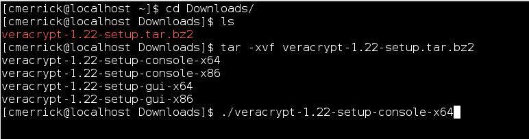 Verify the files were downloaded, then use tar -xvf veracrypt-1. Current_Version_Number -setup.tar.bz2